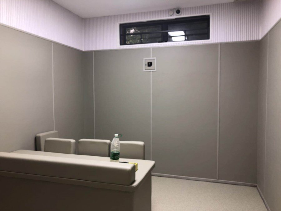談話室軟包的規(guī)格采用整板結(jié)構(gòu),配合航空級(jí)皮革飾面的米黃色/淺灰色,成為目前全國(guó)的建設(shè)談話室墻面常用材料和色號(hào)。采用航空級(jí)皮革的飾面,具有耐磨耐刮的作用,可防止人為故意的扣刮等傷害,即是收到成年人的全力沖擊,在芯材聚乙稀棉的作用下都不會(huì)使其有巨大的變形,其產(chǎn)生的彈性防止了那些因情緒激動(dòng)選擇撞墻自傷的行為。為軟包賦予彈性、阻燃性、環(huán)保性、防撞性、防水性等功能,才可實(shí)現(xiàn)潭州市紀(jì)委談話室軟包墻的建設(shè),做到確保安全到位,并且軟包還要具有一定的防酸堿腐蝕的性能,還要確保潭州市紀(jì)委談話室的正確使用等,才能完成整套墻面防撞工作的進(jìn)行。