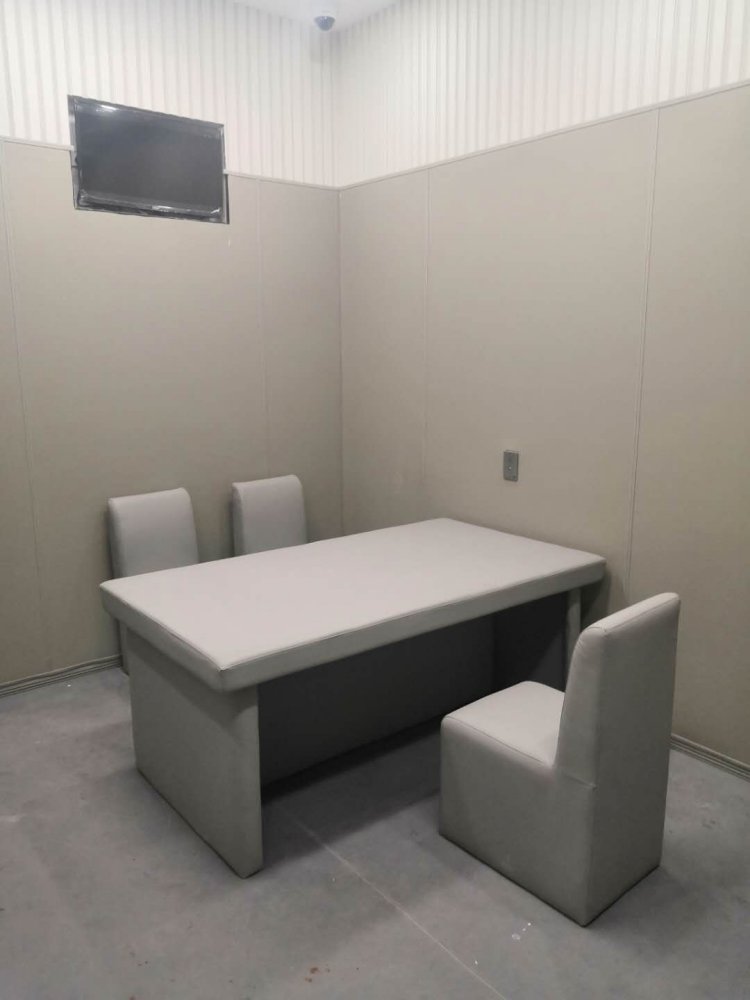 完善整墻:一般紀委審訊室等公檢法辦公室都是3米高的墻,墻剩余高度我們是建議在防撞墻面上安裝木質(zhì)吸音板,不但可以吸音降低室內(nèi)回音,還可以達到墻面裝飾美觀的效果,質(zhì)量好實用性強而且經(jīng)濟實惠。還適用于紀委審訊室、監(jiān)察室、公檢法、公安局、派出所、詢問室、檢察院、法院等場所。
